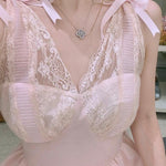 🌸The ribbon-tied shoulder straps elegantly gather the lace, evoking the opulence of Victorian-era ball gowns.