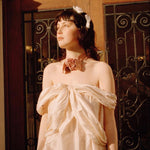 A design with a large ribbon on the skirt, reminiscent of the scene where "Sailor Moon" transforms. The asymmetrical and voluminous feel of multiple layers of fabric increases the pattern of how to wear it. Depending on how you pass your arm, it can be either with a sleeve or off-shoulder. The 100% silk material has been carefully selected to achieve the best feel. The length of the skirt is also different in the front and back, and you can now aim for a refreshing back view and style-up effect. I'm glad that you can adjust the length a little to make your clothes look luxurious. A shoulder strap made of the same material as the clothes and a transparent shoulder strap are included.