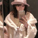 Made from ultra-soft faux fur, this cozy oversized design features a luxurious hood, a delicate satin bow at the waist, and a timeless silhouette. Perfect for staying warm while looking elegant, this coat brings a touch of Japanese Roma gyaru kei vintage-inspired sweetness to your wardrobe. Ideal for coozy days, holiday outings, or simply feeling like a winter princess.
