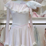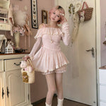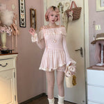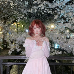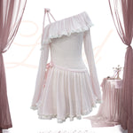 [Rose Island] Soft Rosy Moon Off-shoulder dress
