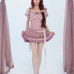[Rose Island] The Rosy Kiss Crop Top and Ruffle Tulle Skirt Set