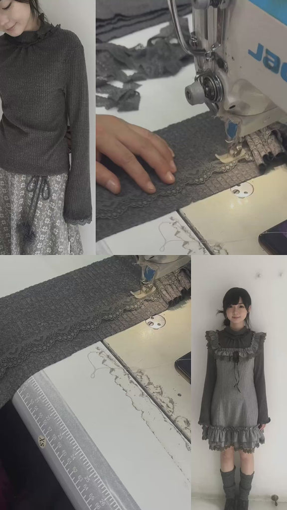 Delicate double-layer lace trims around the collar and cuffs add a touch of quiet romance, perfect for layering under dresses, pinafores, or wool coats.