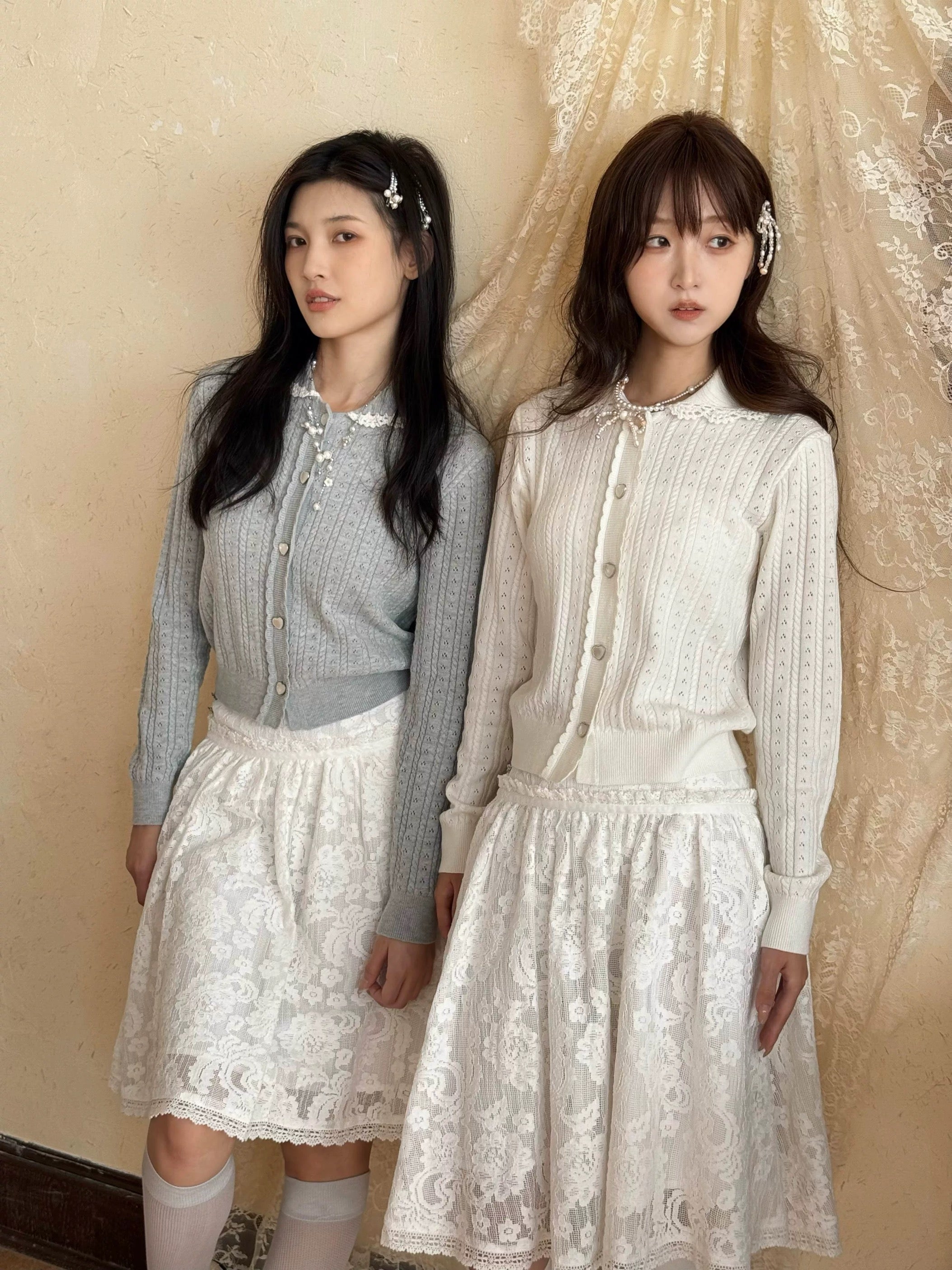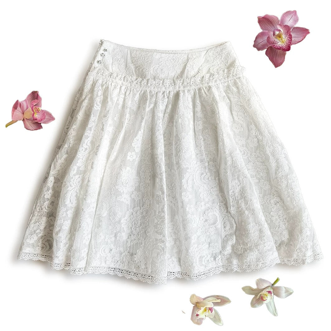 Experience a romantic and coquette vibe with the [Pacific Position] Angel Heart Club Lace Midi Skirt. Its angelic and pastel style adds a girlish and sweet touch to your wardrobe. Made with delicate lace, this midi skirt is perfect for those looking for a feminine and elegant look.