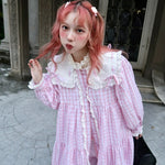 [August Unicorn] The Sailor Girl Gingham Babydoll Thin Coat is the perfect addition to your coquette core wardrobe. This cute and sweet coat exudes a fairy core vibe and pairs perfectly with pastel outfits. Embrace whimsy and femininity with this must-have piece.