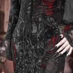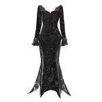 [Blood Supply] Scarlet Romance Gothic Velvet Long-Sleeve Mermaid Dress