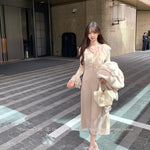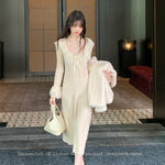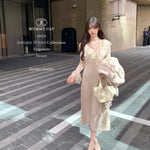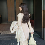Both the neckline and cuffs feature lace hollow-out designs, layered with intricate lace details, enriching the knit dress with a touch of sophistication, romance, and softness. The waist-cinching design accentuates your body curves beautifully.