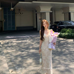 With its effortless slip silhouette, subtle shimmer, and barely-there feel, this dress brings romance to life—comfortably elegant, like a gentle breeze on a warm evening.