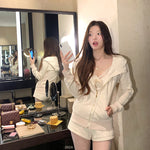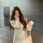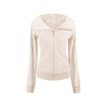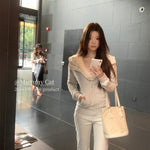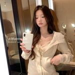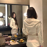 This sweatshirt set stands out from others with its intricate lace splicing details, elevating the overall delicacy and refinement of the hoodie outerwear significantly.