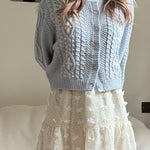Perfect for layering over lace camisoles, pastel dresses, or pairing with a velvet ribbon in your hair, this cardigan brings a coquette mood to everyday moments. It’s babydoll sweetness make it a wardrobe treasure for dreamy afternoons, cozy cafés, or strolling through a pastel winter wonderland.