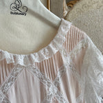 The River Poetry Dress captures the elegance of misty rose silk, embroidered with delicate cotton lace, evoking a lyrical calm. With soft pleats and lace paneling, it embodies both Victorian refinement and a gentle romantic mood.