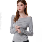 A soft, melancholic ode to the feeling of not wanting summer to end — this off-shoulder grey sweatshirt captures the cozy rebellion of autumn days.