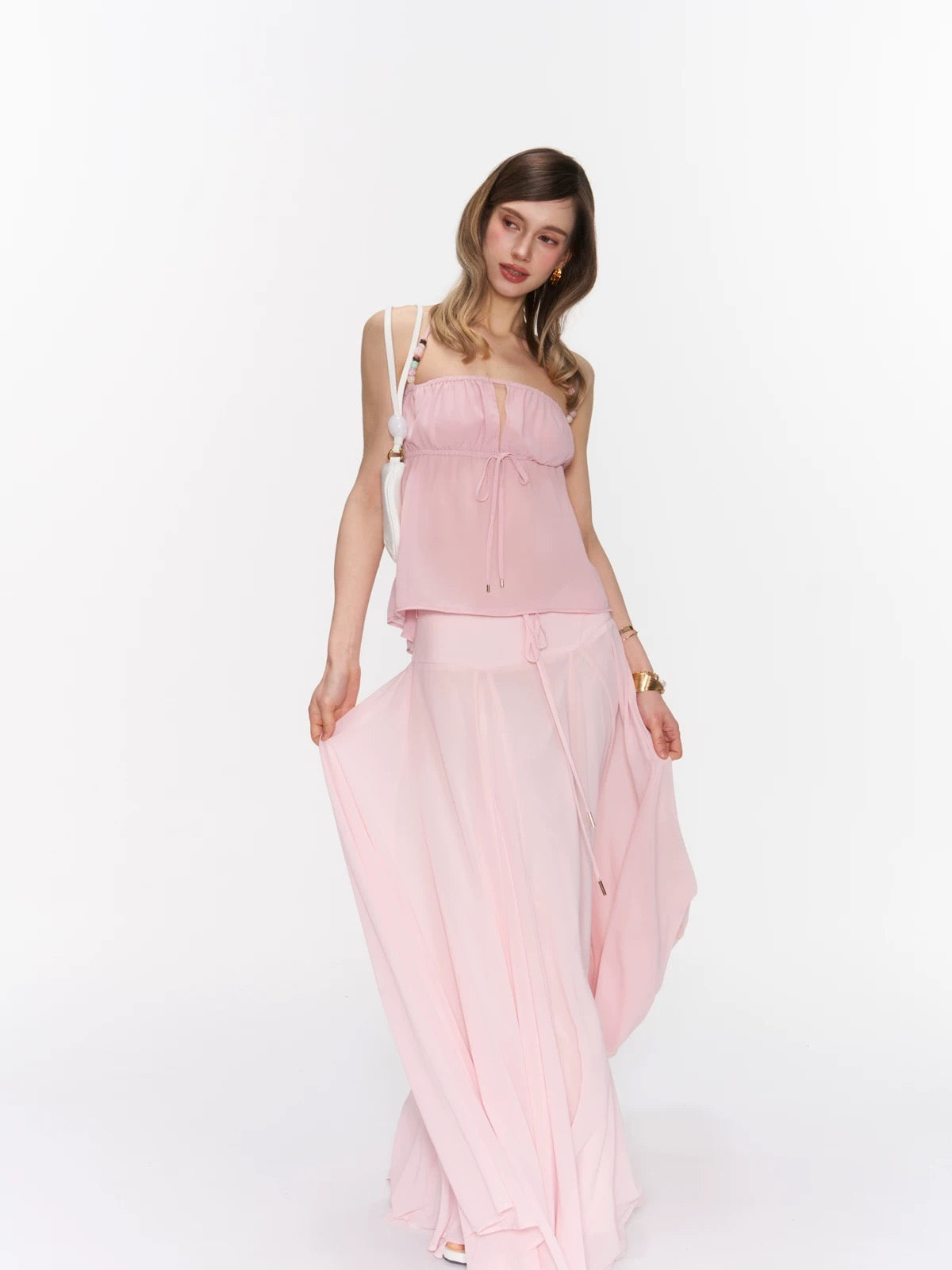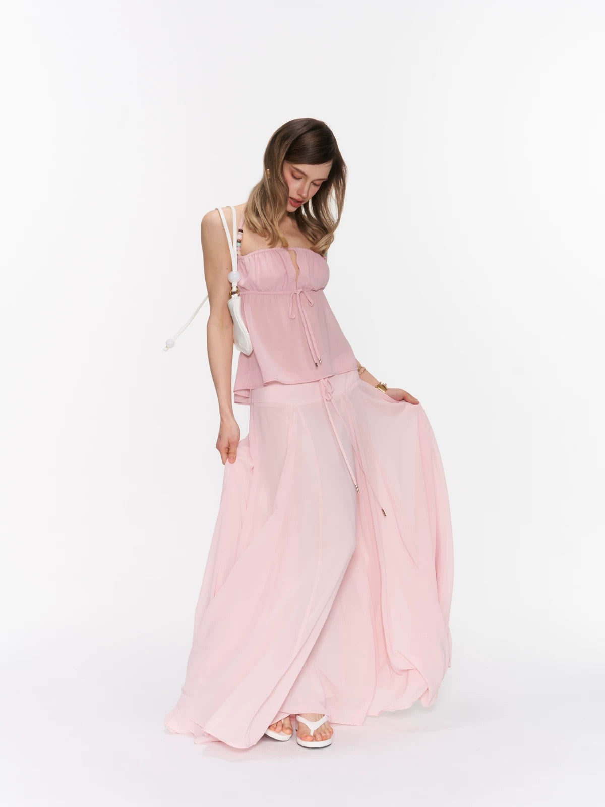 Light, airy, and softly gathered, it creates a romantic movement with every step — effortless, sweet, and slightly undone.