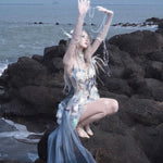 This elegant corset dress is made from soft chiffon that flows like ocean waves. A waterdrop-shaped cutout at the center of the chest gently follows your curves, highlighting your figure with grace.