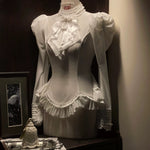 Crafted from thick diagonal jacquard fabric, the main body features an irregular floral pattern, with the front panel showcasing embossed Korean jacquard rose textures that shimmer at different angles. The structured silhouette is enhanced by eight internal boning supports, ensuring a flattering fit, while the hand-sculpted waist detailing adds a refined touch.