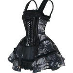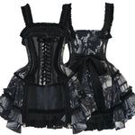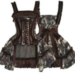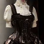 Designed with a faux two-piece structure, it combines structured Korean brocade with printed fabric for a voluminous silhouette. The bodice features waist boning for shaping, back corset lacing for adjustability, and delicate hand-pleated trims for a luxurious touch. The side waist decorations are handcrafted European-style rosettes, enhancing the cinched waist effect.