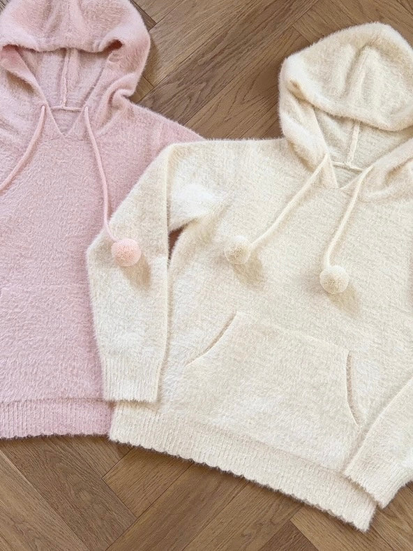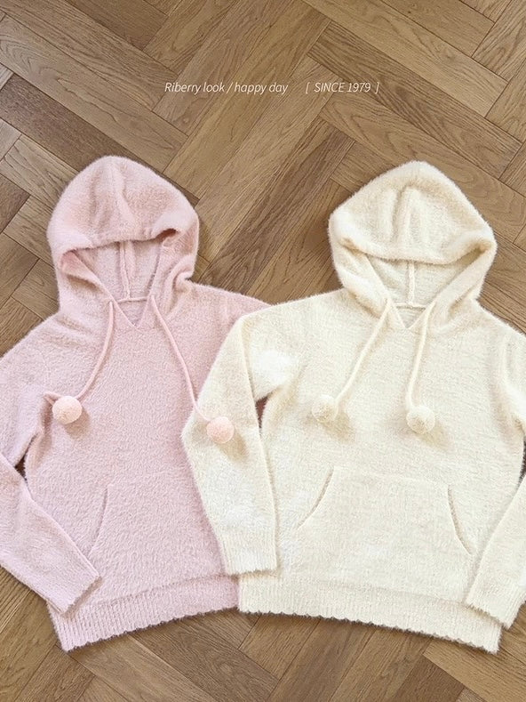 Riberry Fluffy Pom Pom Fleece Hoodie Sweater