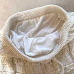 • Knit texture may have small yarn ends; handle gently to avoid pulling or snagging.