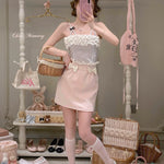 Step into a dreamy fairytale with this pastel pink mini skirt, adorned with delicate ribbon bows and soft ruffle details. Its sweet vintage vibe makes it perfect for coquette core, ballet core, or just adding a touch of girly charm to your everyday looks. Pair it with a frilly blouse, a knit cardigan, or even a dotted camisole for endless styling magic ♡