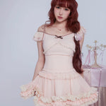 [Rose Island] Soft Rosy Kiss Crop Top and Ruffle Tulle Skirt Set