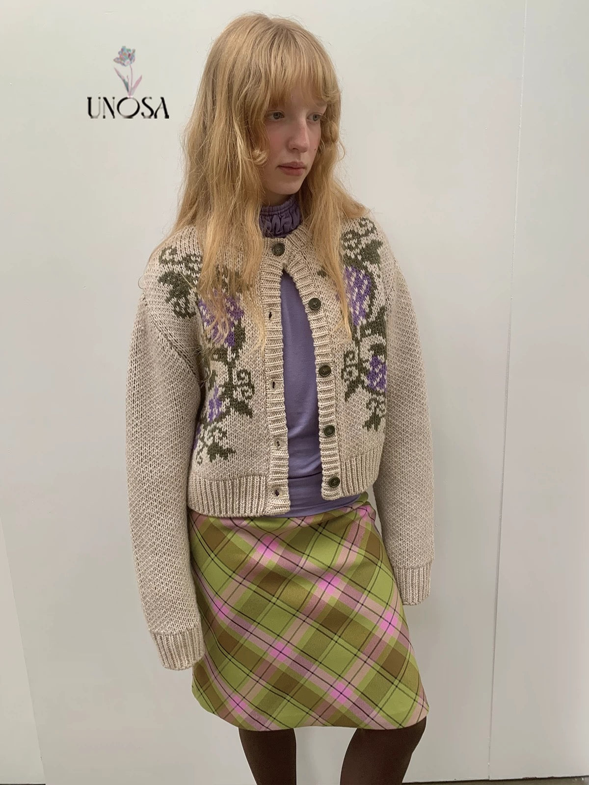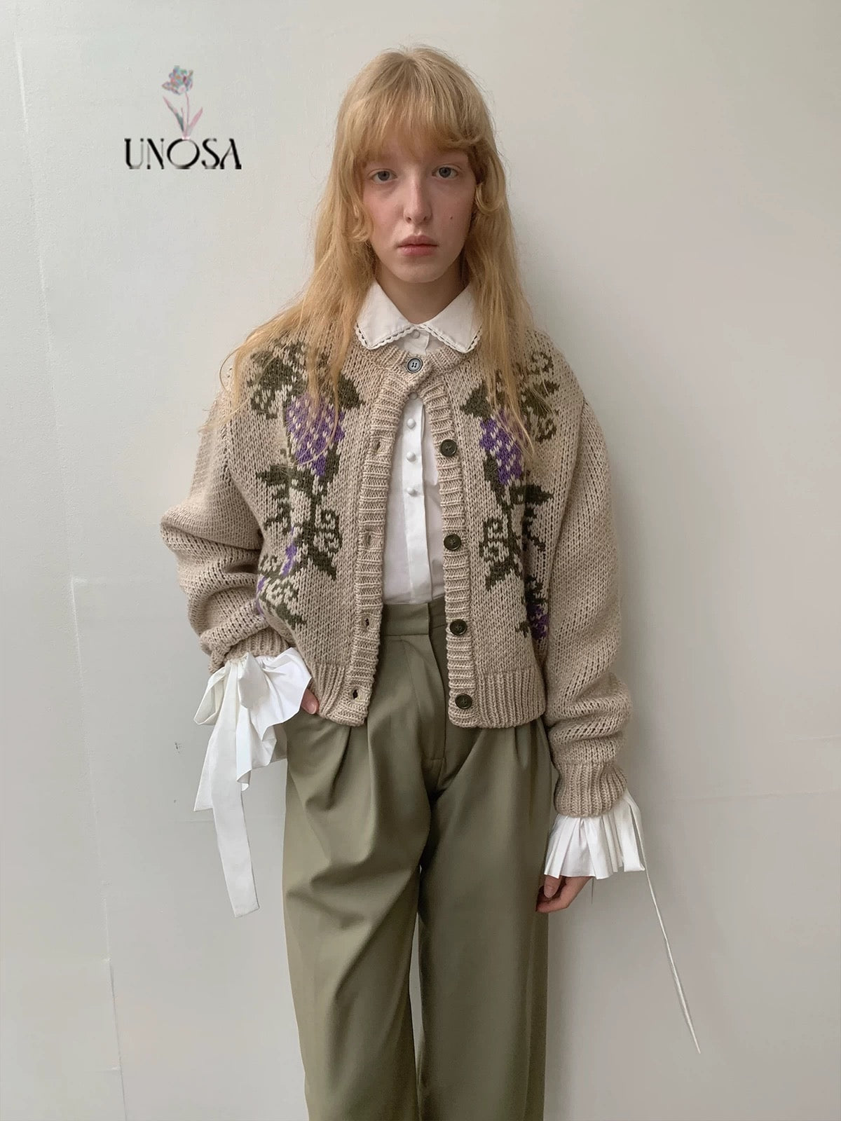 UNOSA Autumn Vineyard Grapes Wool Cardigan