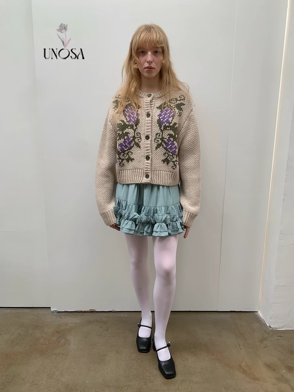 Style keywords: vintage knitwear · autumn aesthetic · soft girl cardigan · coquette cottage core · embroidered grapes
