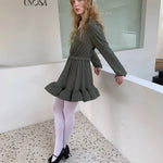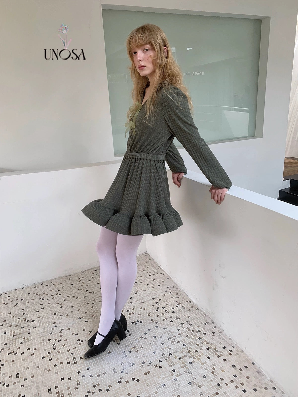 Step into a fairy-tale Christmas dream with this enchanting forest green knit dress.