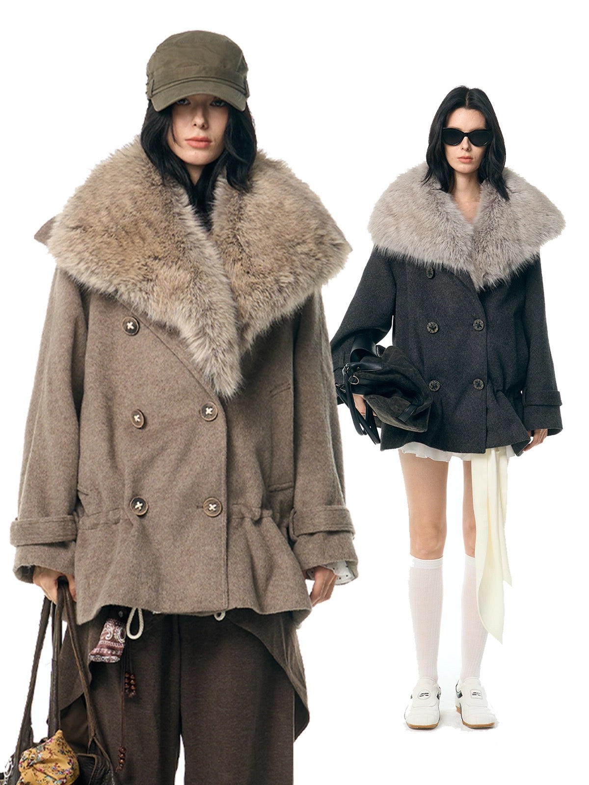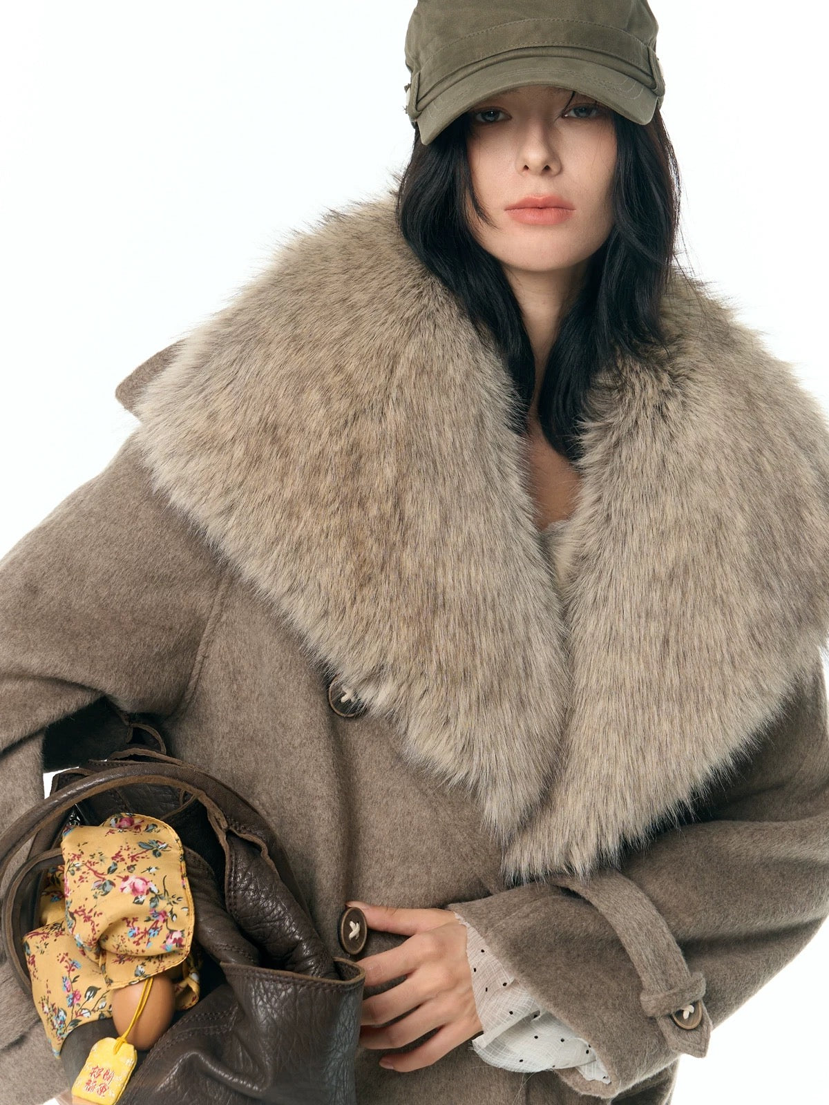 Soft faux-fur trims adorn the collar and cuffs, giving a regal, vintage feel while providing extra warmth. The detachable scarf-style collar adds versatility and sophistication, making it perfect for both everyday strolls and evening outings.