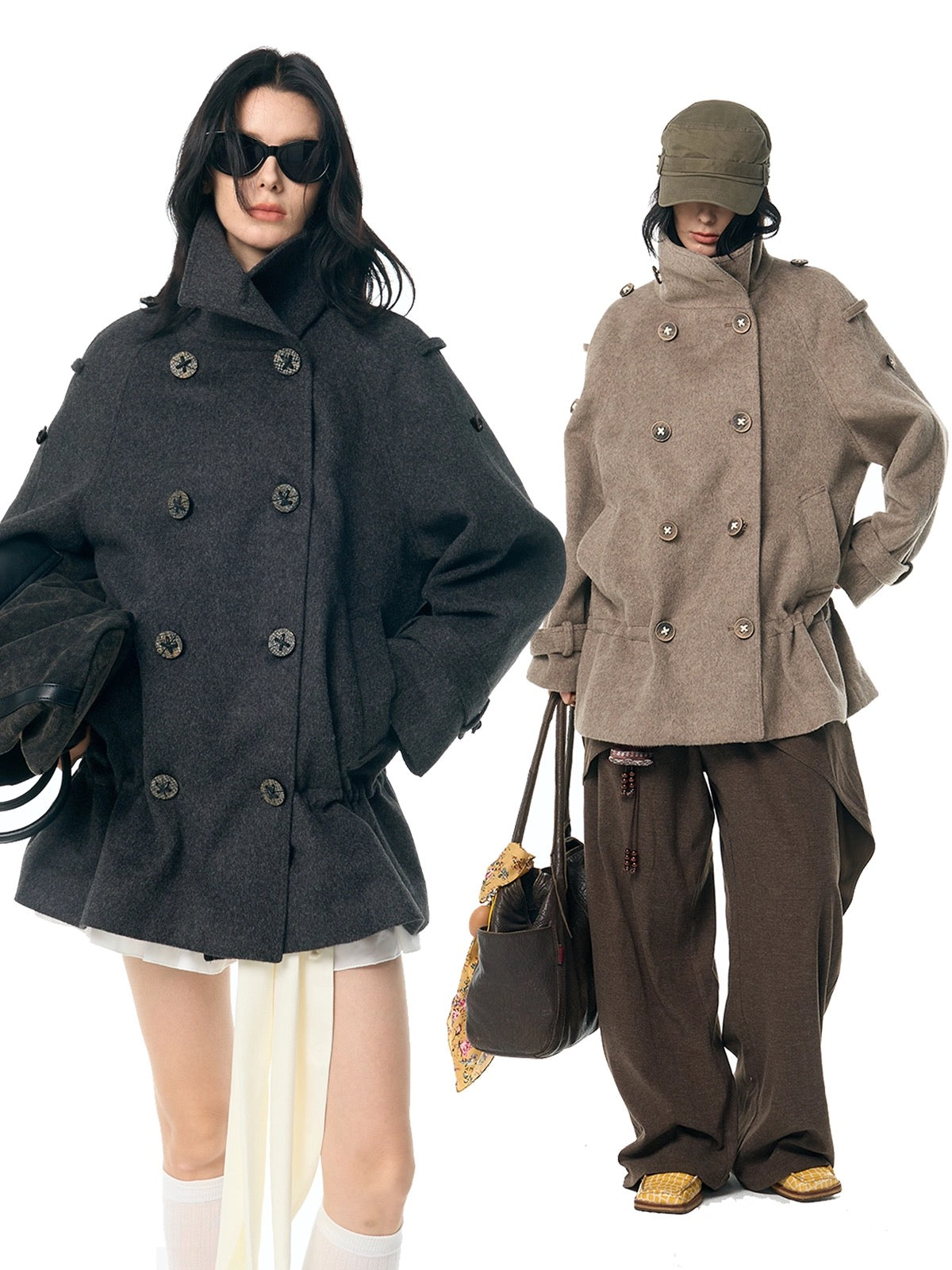 The Heiress Charm Wool Coat is a luxurious statement piece crafted for autumn and winter days, infused with a subtle British-inspired elegance. Designed in a refined black-charcoal hue, this coat features a cinched waist and flared hemline that flatters the silhouette with a touch of aristocratic charm.