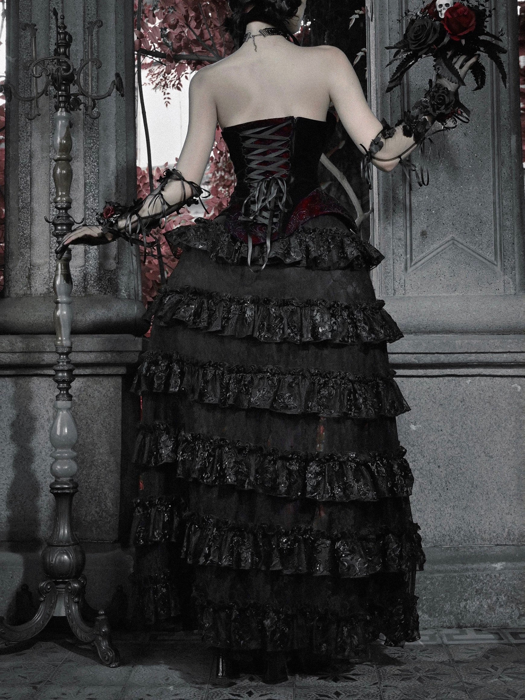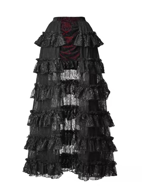 the Crimson Thorn Layered Skirt captures the allure of Gothic opulence and vampire romance.