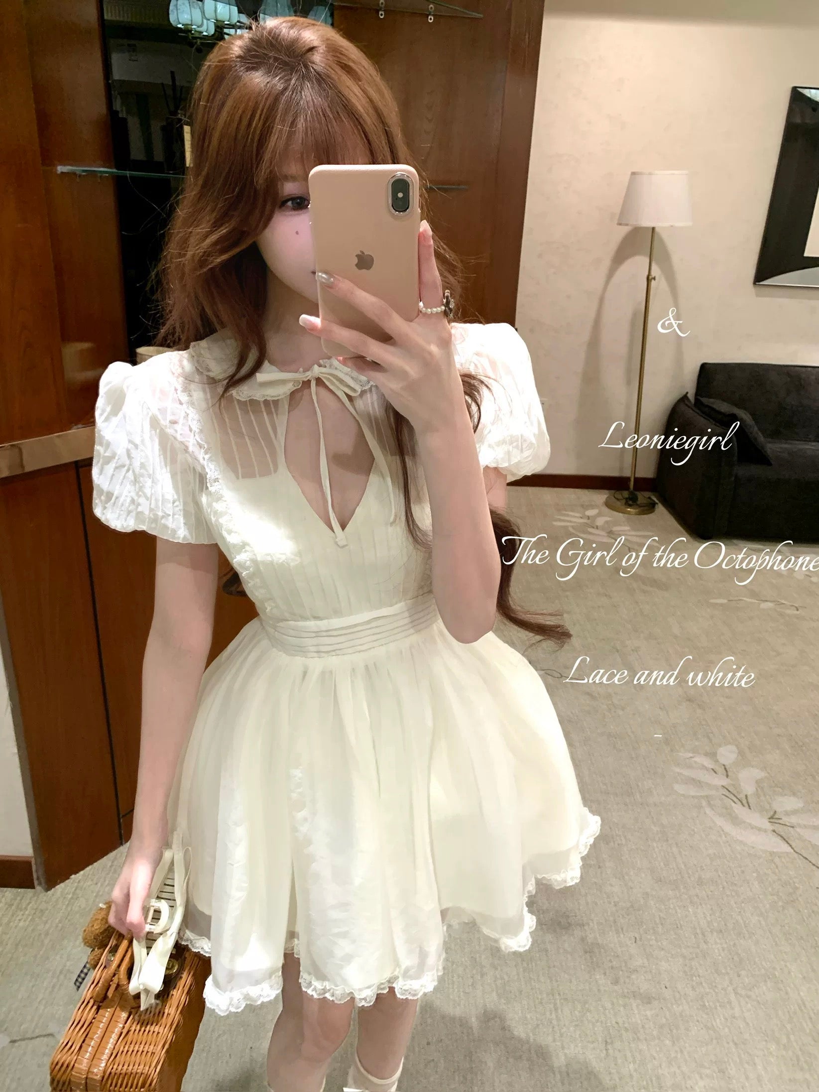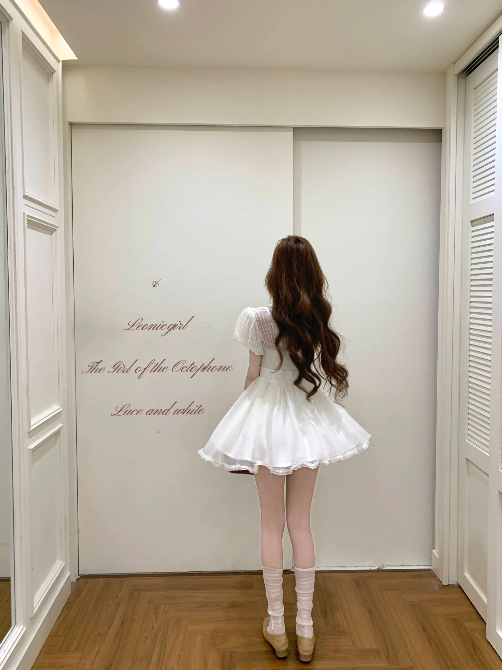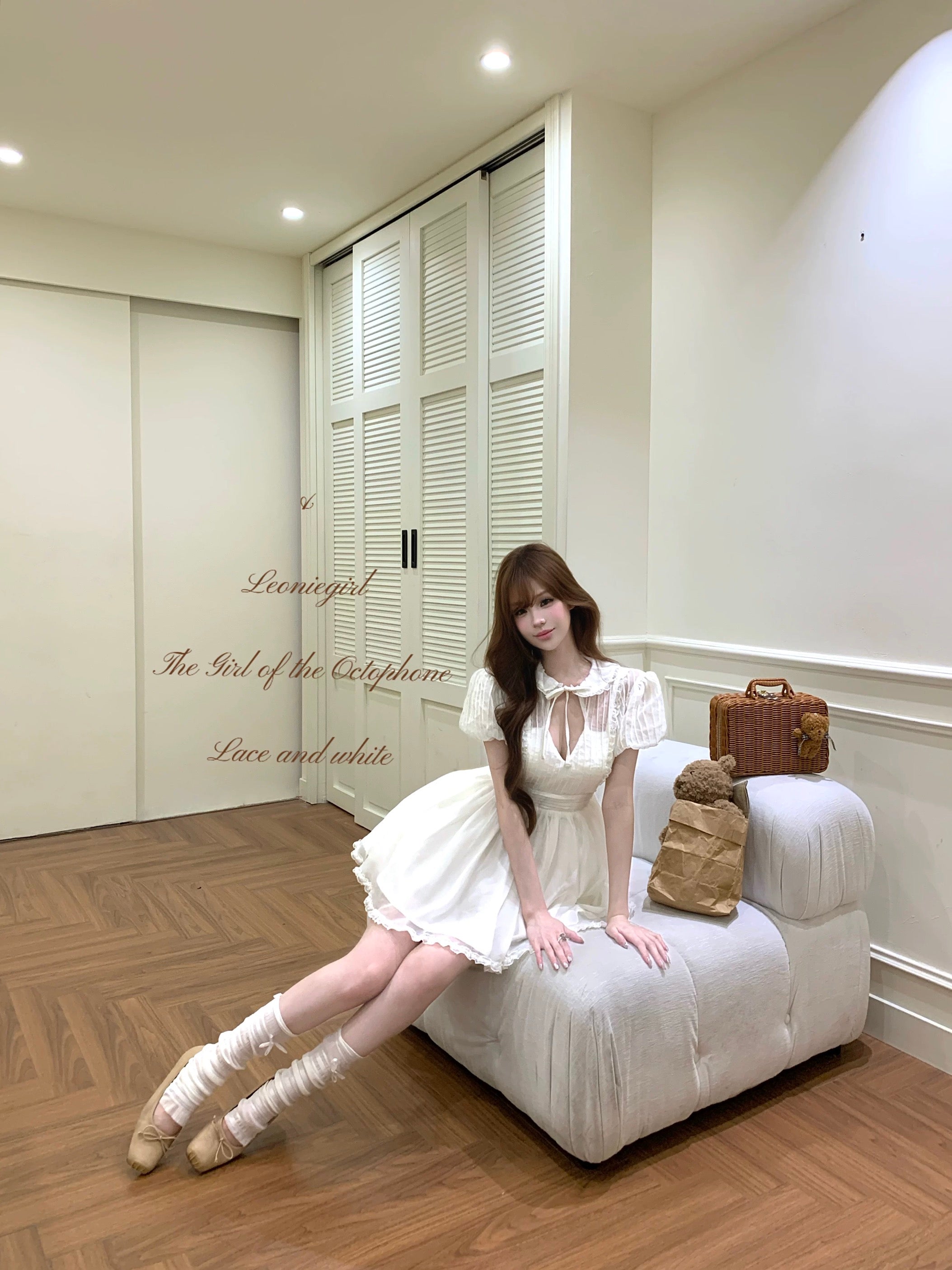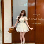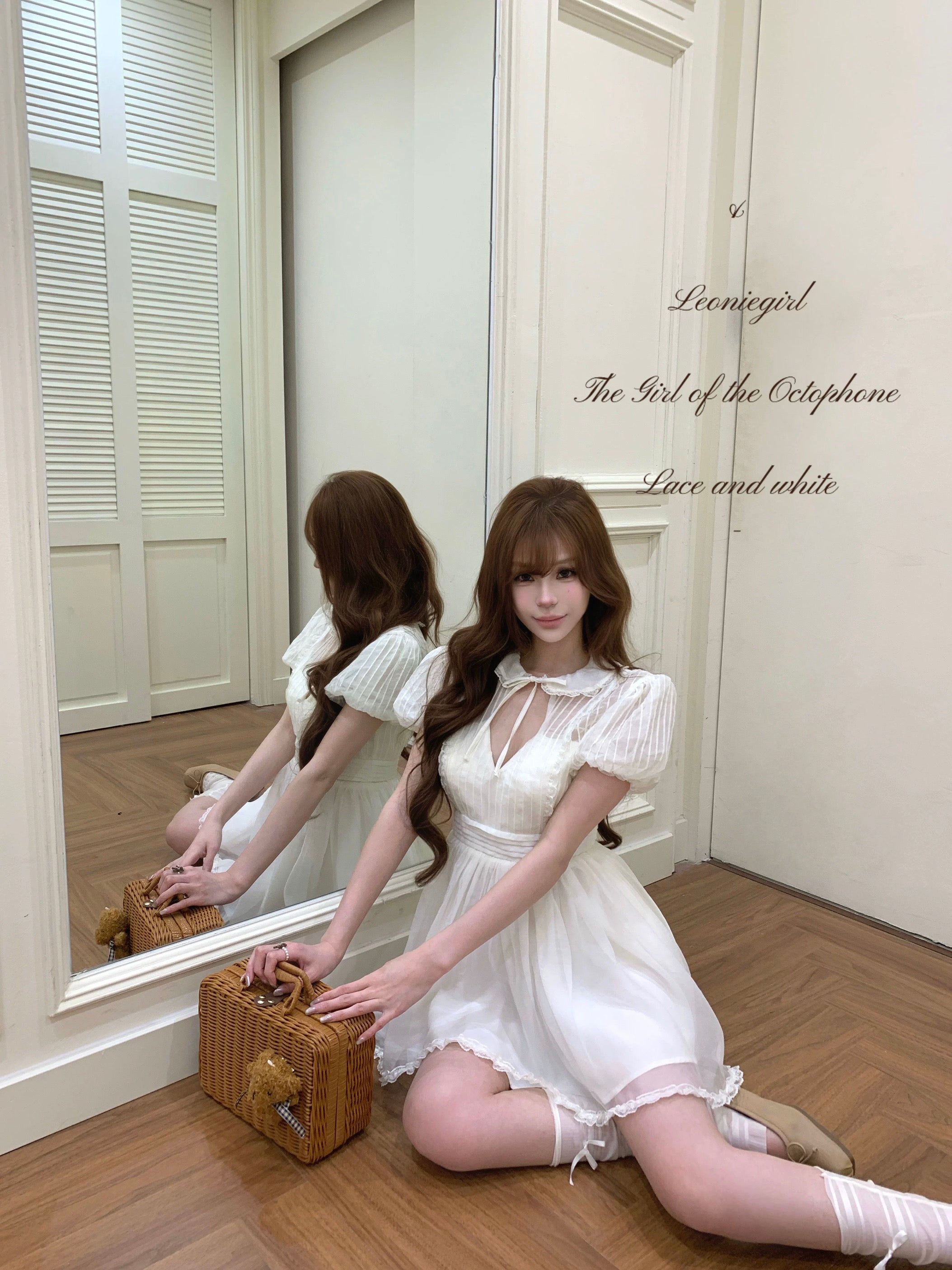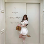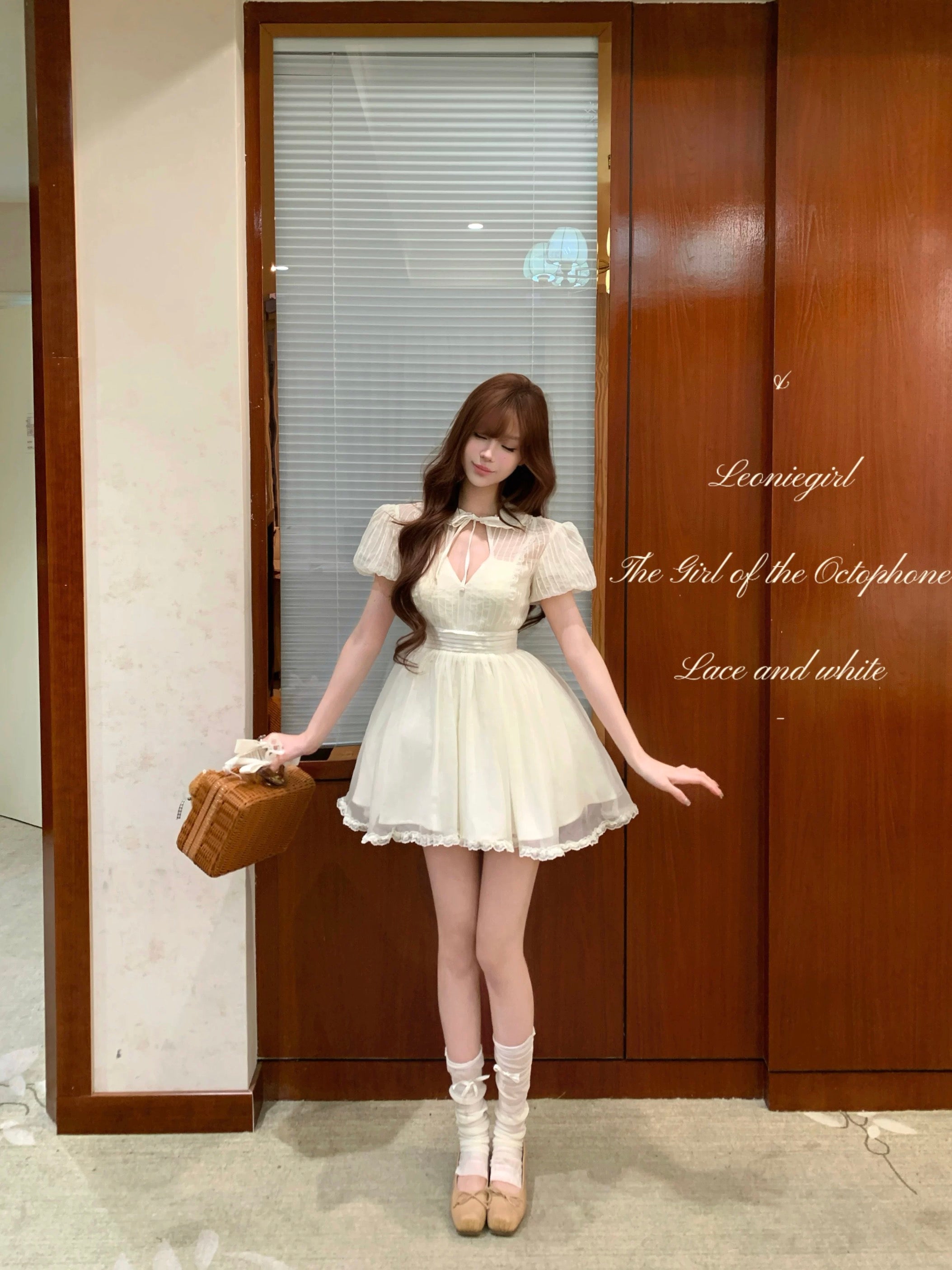 The skirt is finished with layered lace trimming, forming a light and airy puffy silhouette that moves gracefully with every step. Perfect for café dates, vintage photo moments, and dreamy summer afternoons ✨