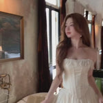 Enhanced by the interplay of light and shadow, it adds a captivating aura to any wardrobe. Handcrafted with meticulous attention to detail, each piece requires extensive labor, with artisans meticulously threading beads and inserting ten individual boning supports.
