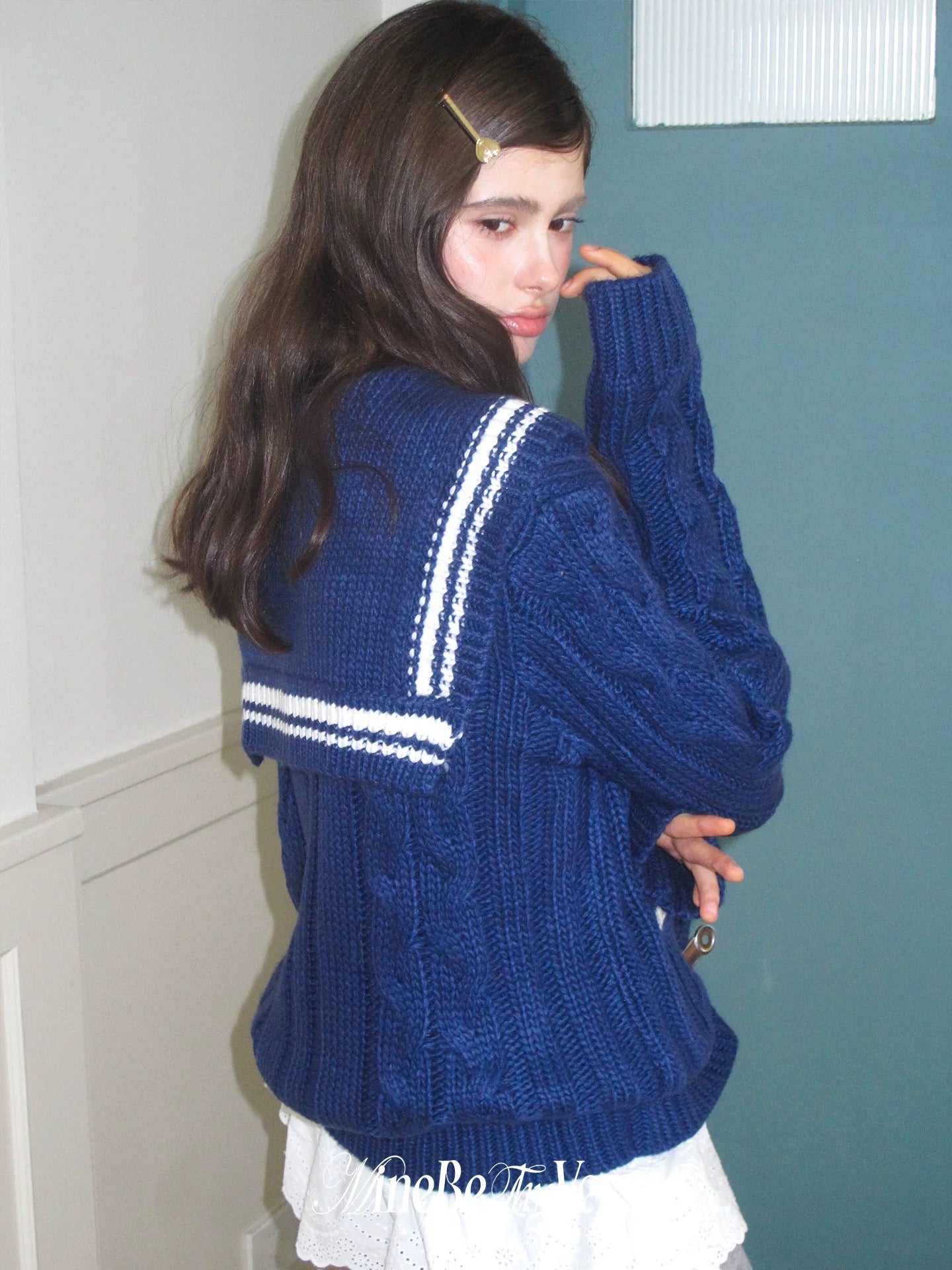 This Nautical Cable Knit Cardigan blends vintage maritime charm with soft, chunky warmth. The wide sailor collar is framed by contrasting white stripes and pairs beautifully with the relaxed dropped-shoulder design. Finished with wooden buttons and textured cable knitting, it offers both comfort and character — perfect for layering over dresses or skirts through chilly autumn days.