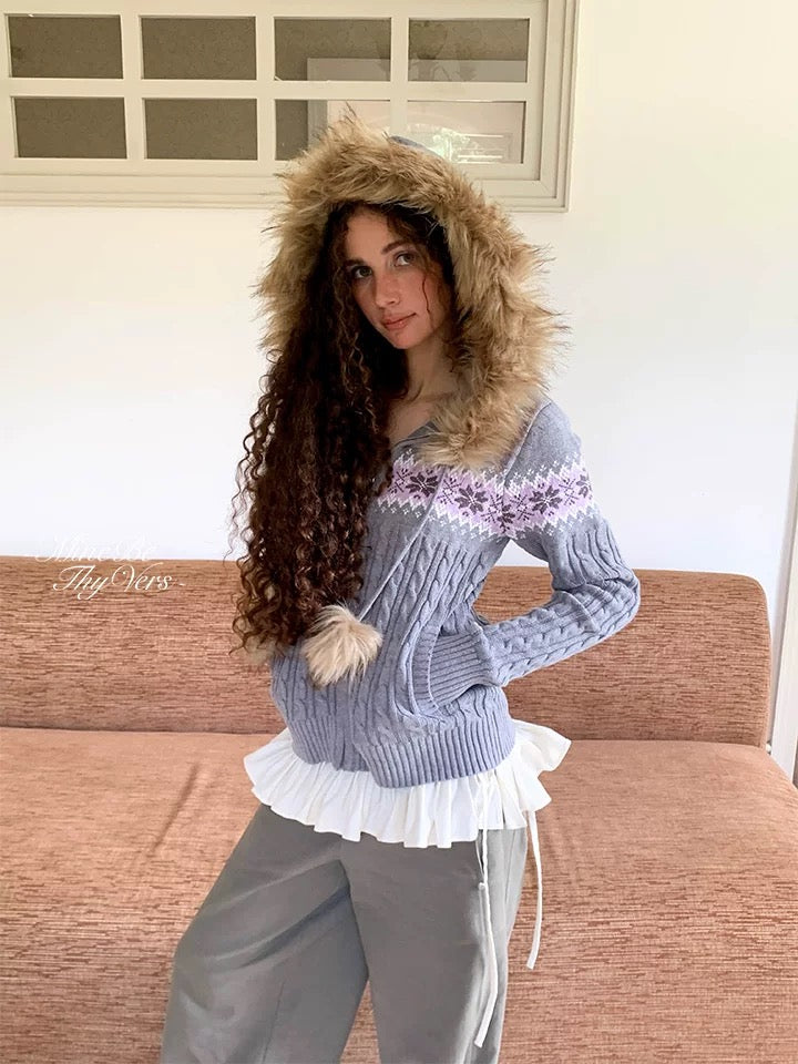 MineBeThyVers Winter Tale Fair Isle Knit Hoodie Faux Fur