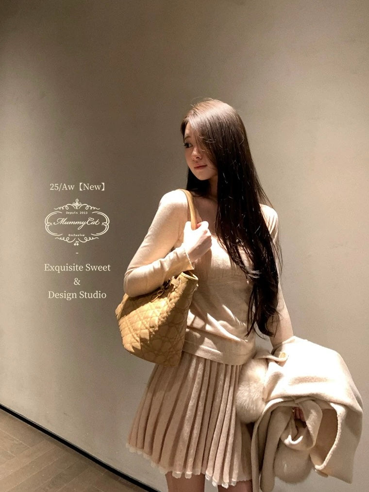 Inspired by the gentle sunlight of southern Italy, this cream-beige pleated knit skirt carries the same soft and romantic tone as the matching lace knit top.
