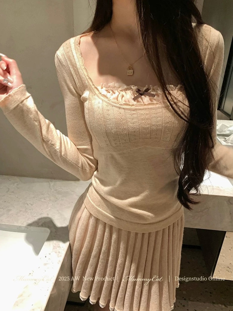 Pair it with the Sicilian Cream Lace Knit Top for a complete matching set — perfect for cozy mornings, coffee breaks, and soft Parisian days. ♡