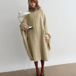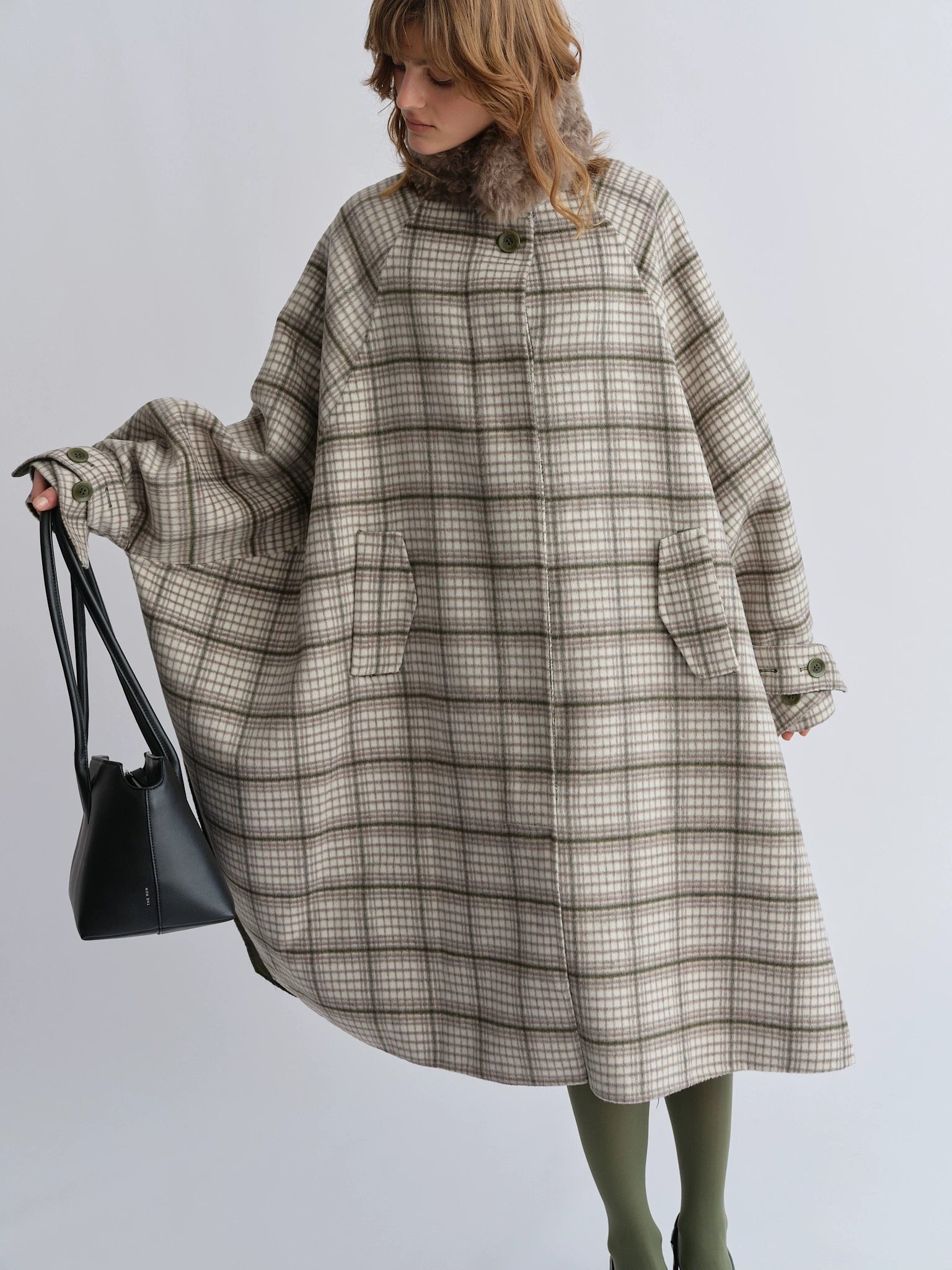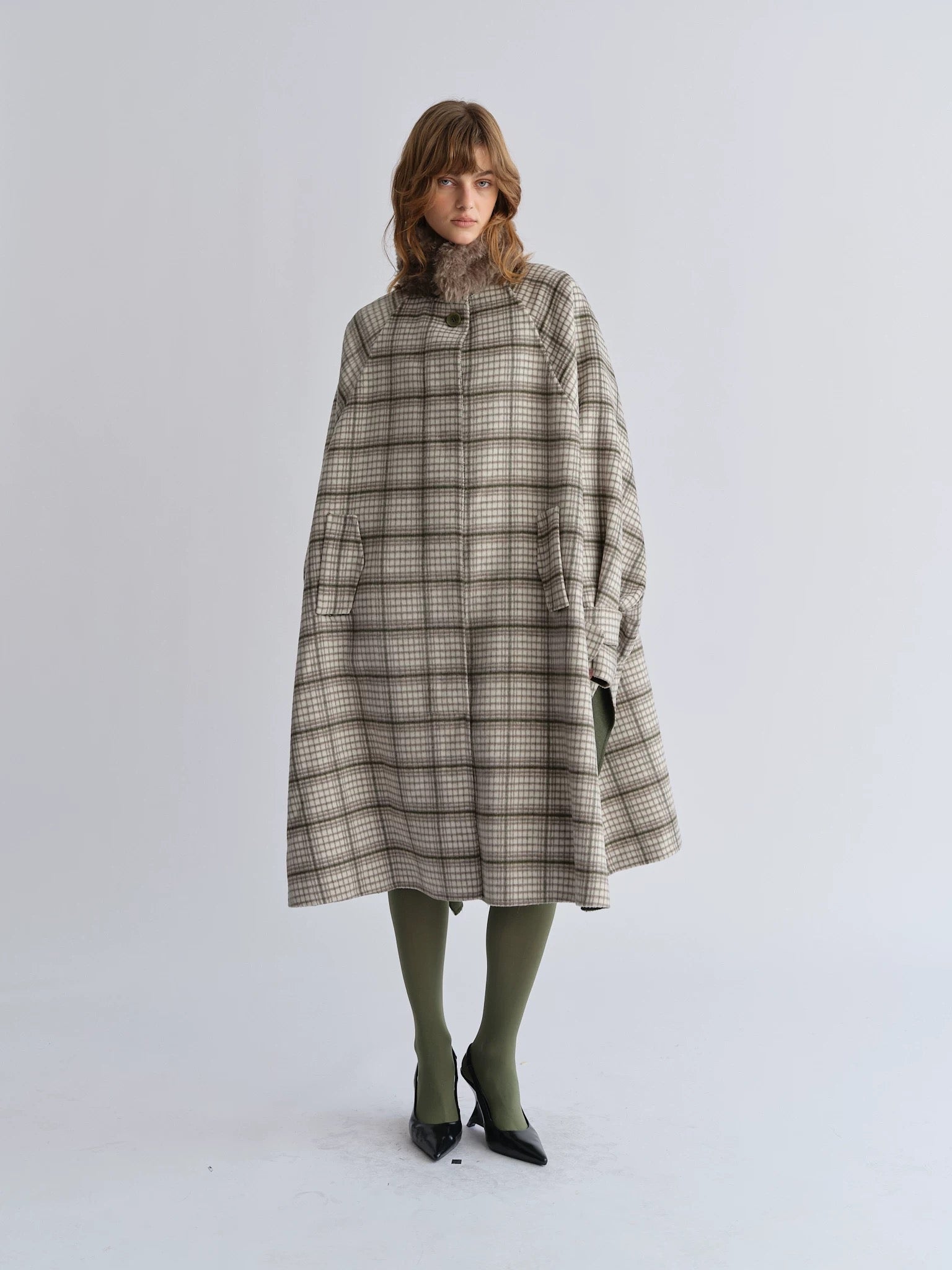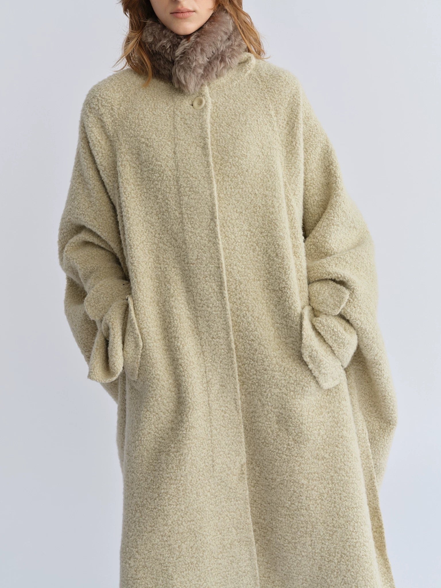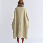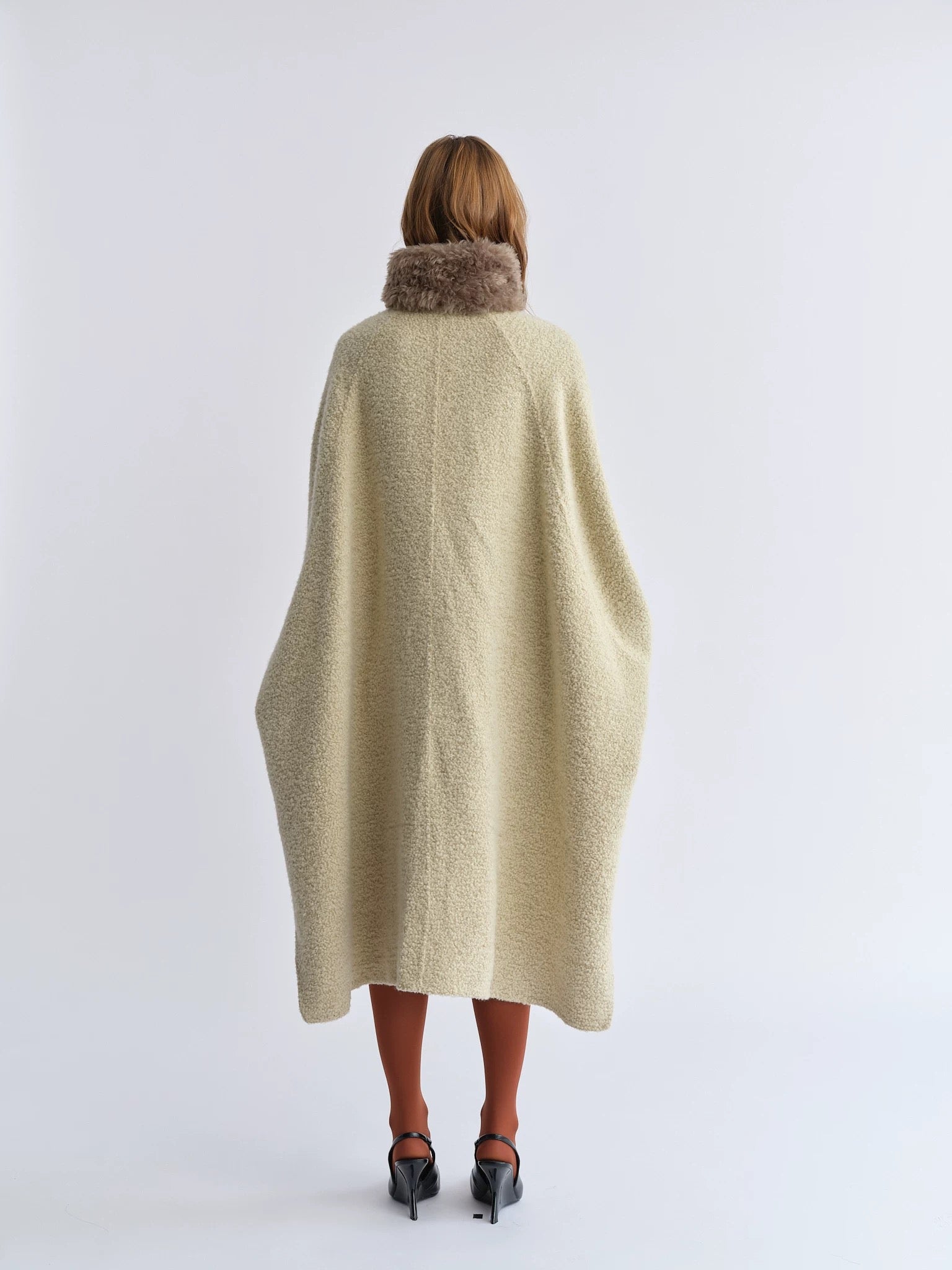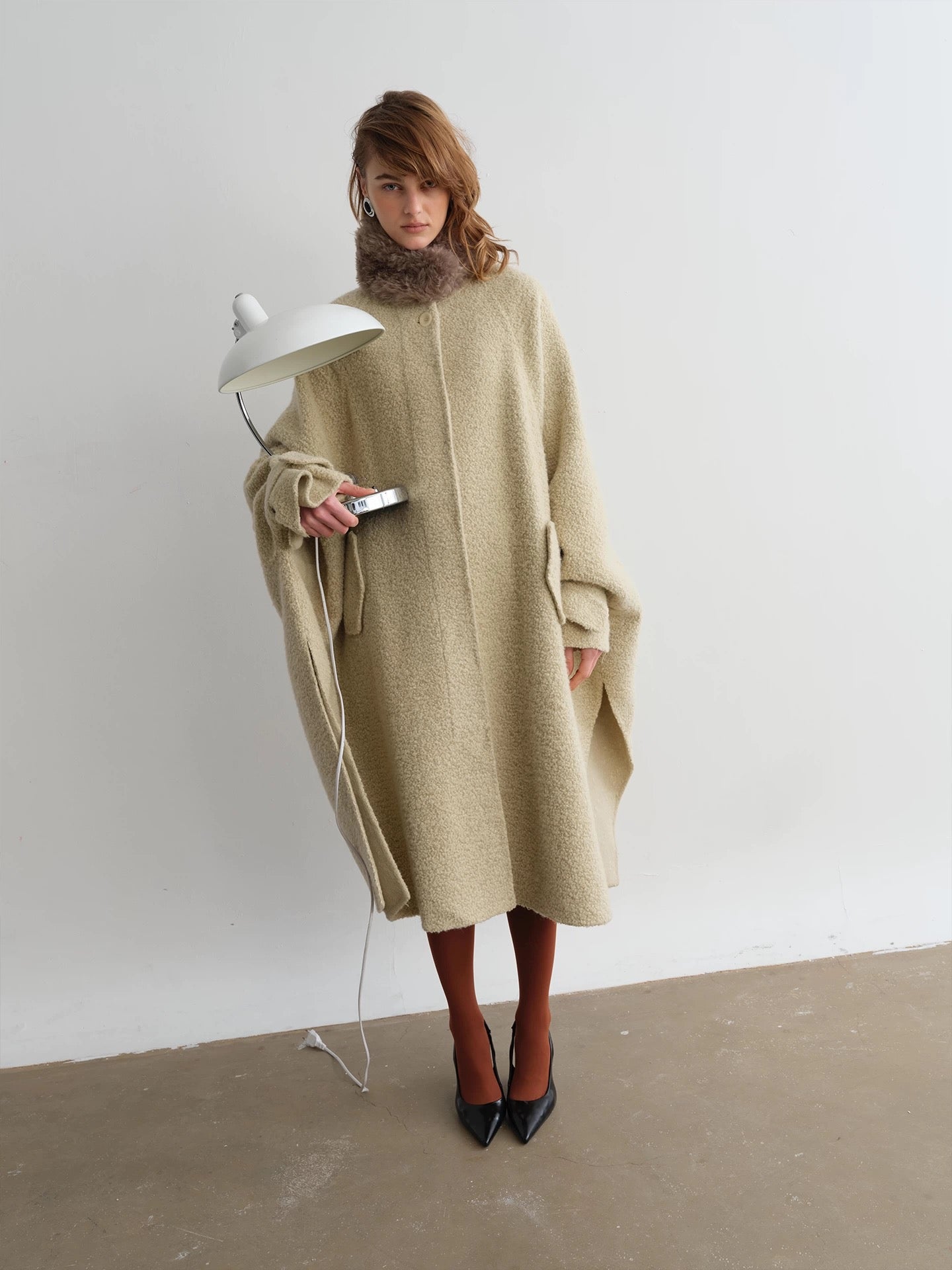 PREEKEND Oversized Wool-Blend Cape Coat with Detachable Faux Fur Neck Warmer