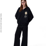 Paired with wide-leg sweatpants, it creates an relaxed silhouette perfect for study days, city walks, or creative mornings. Your ideal companion for cozy autumn layering.