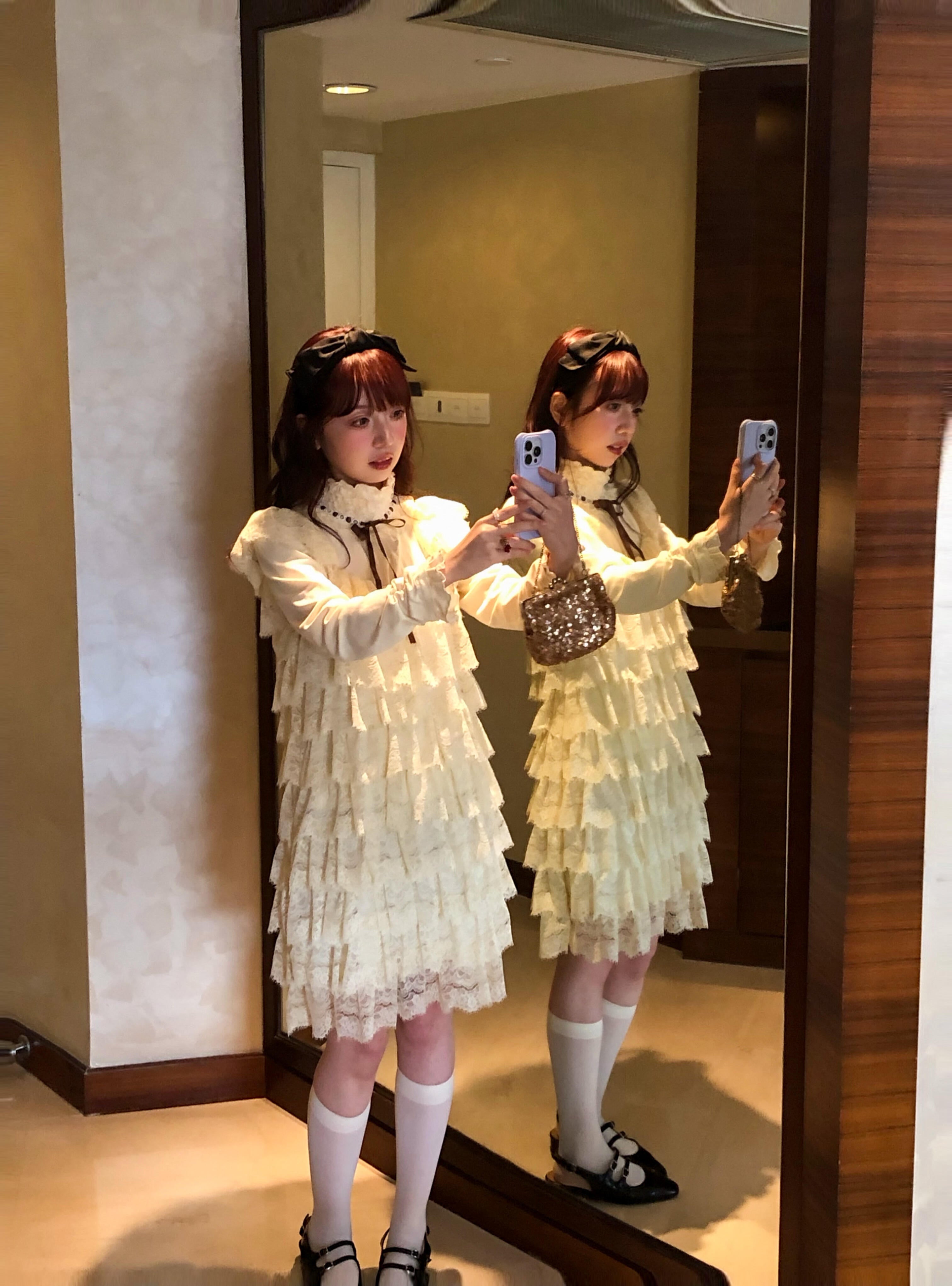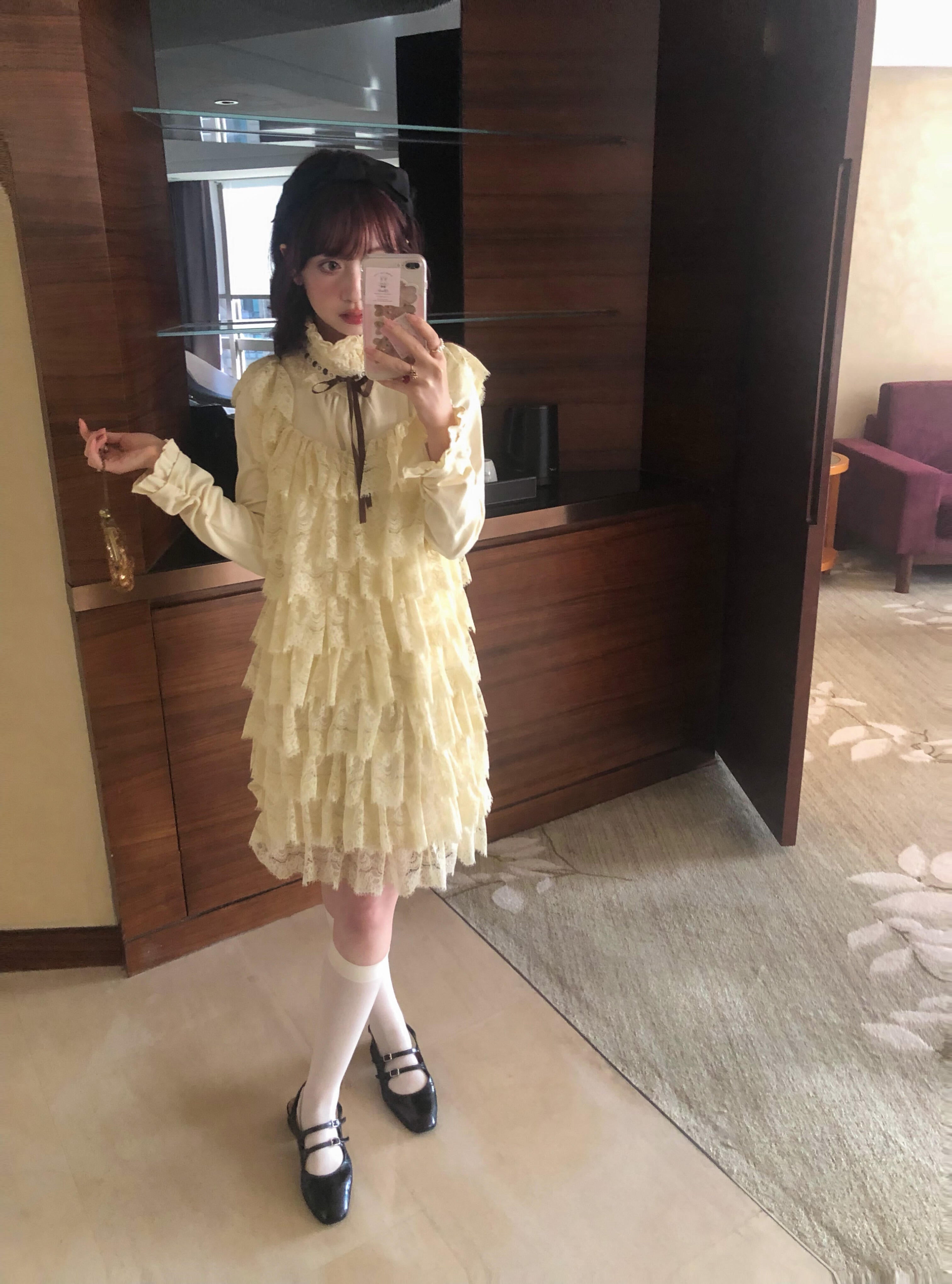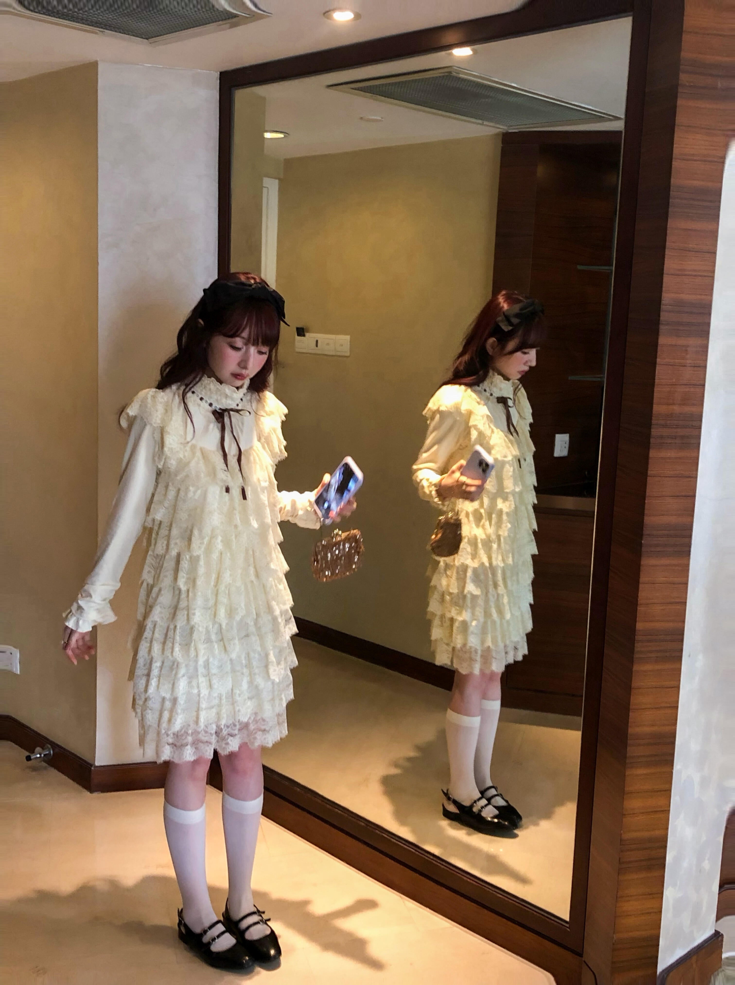 The Rose Candy Vanilla Cream Layer Dress is a softly sweet and elegant piece designed for girls who love timeless vintage charm.
