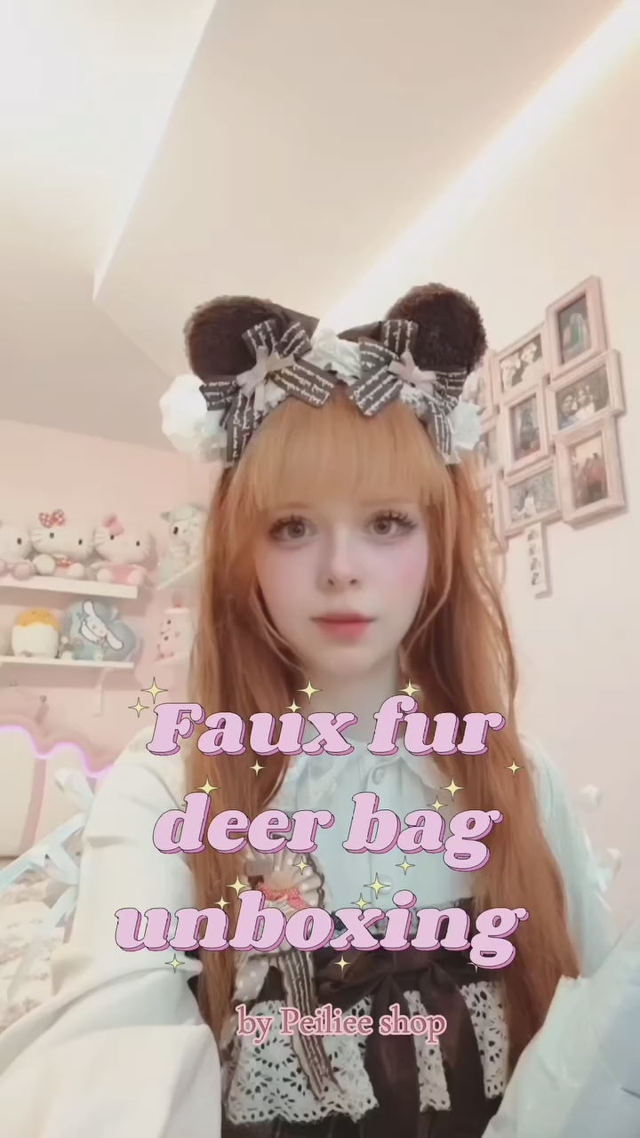 [Rose Island] Fairy Spirit Little Deer in flower field faux fur shoulder bag
