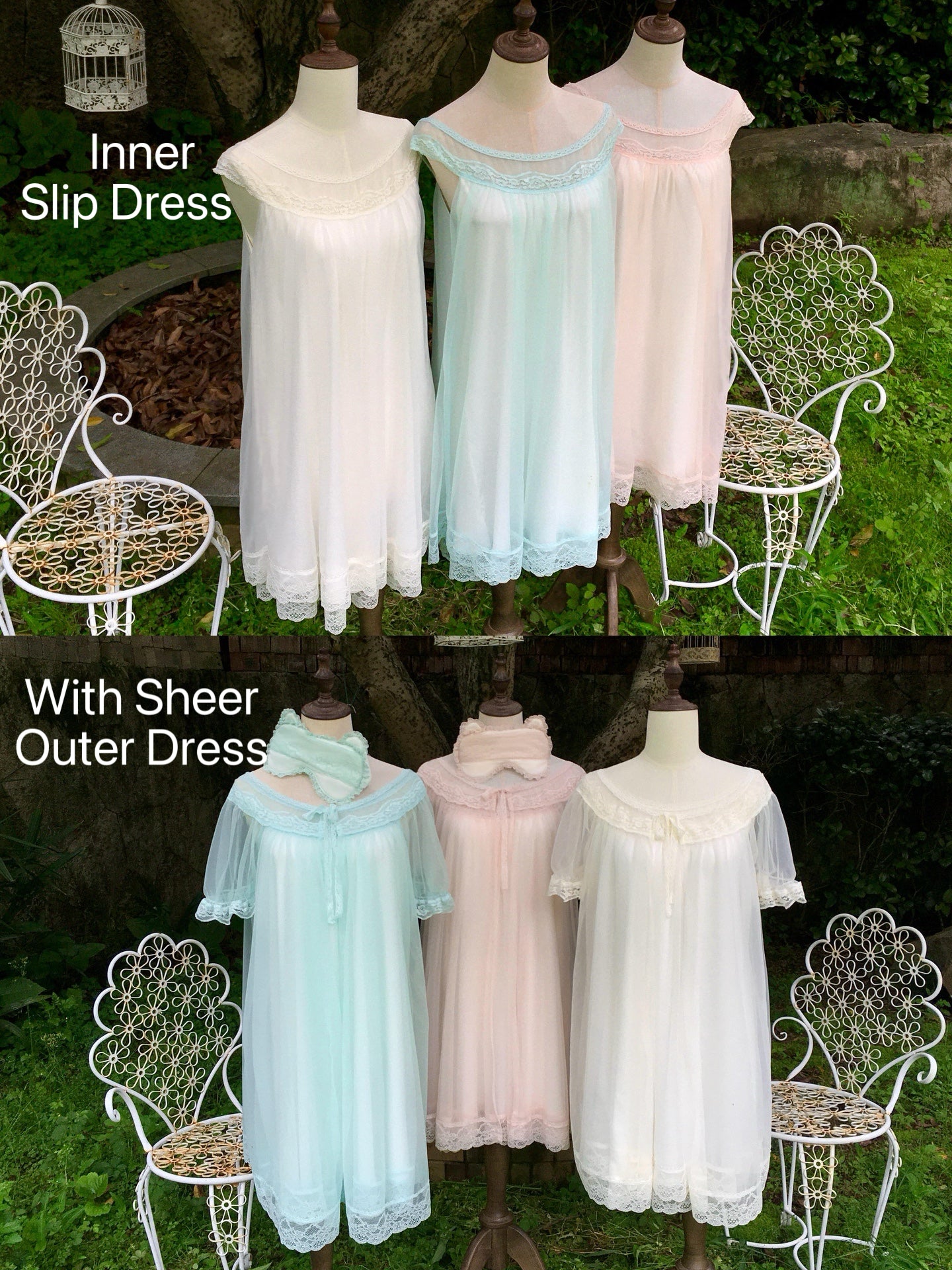 The set includes a lightweight inner slip dress and a sheer outer overdress, or you can buy the inner dress separate.