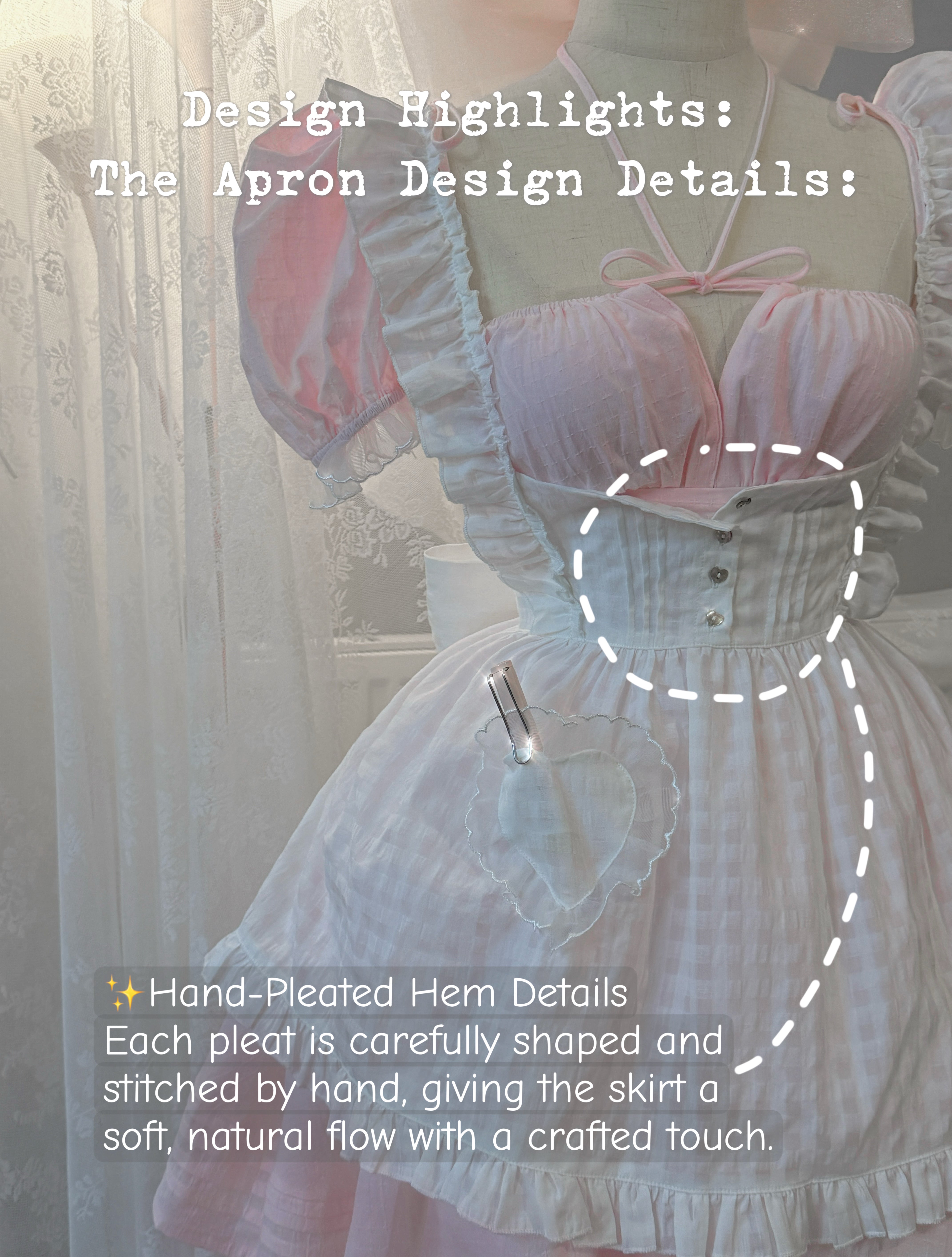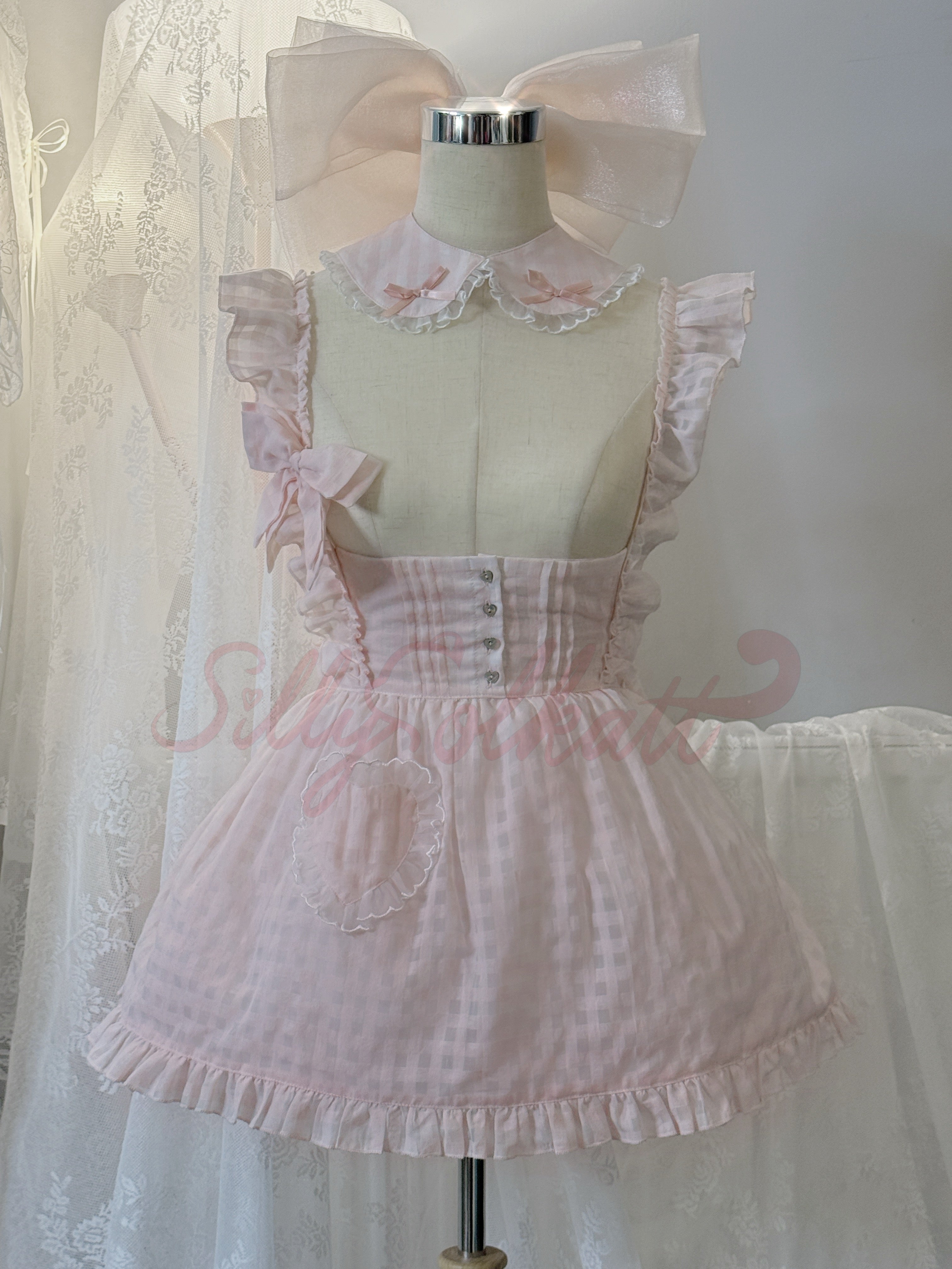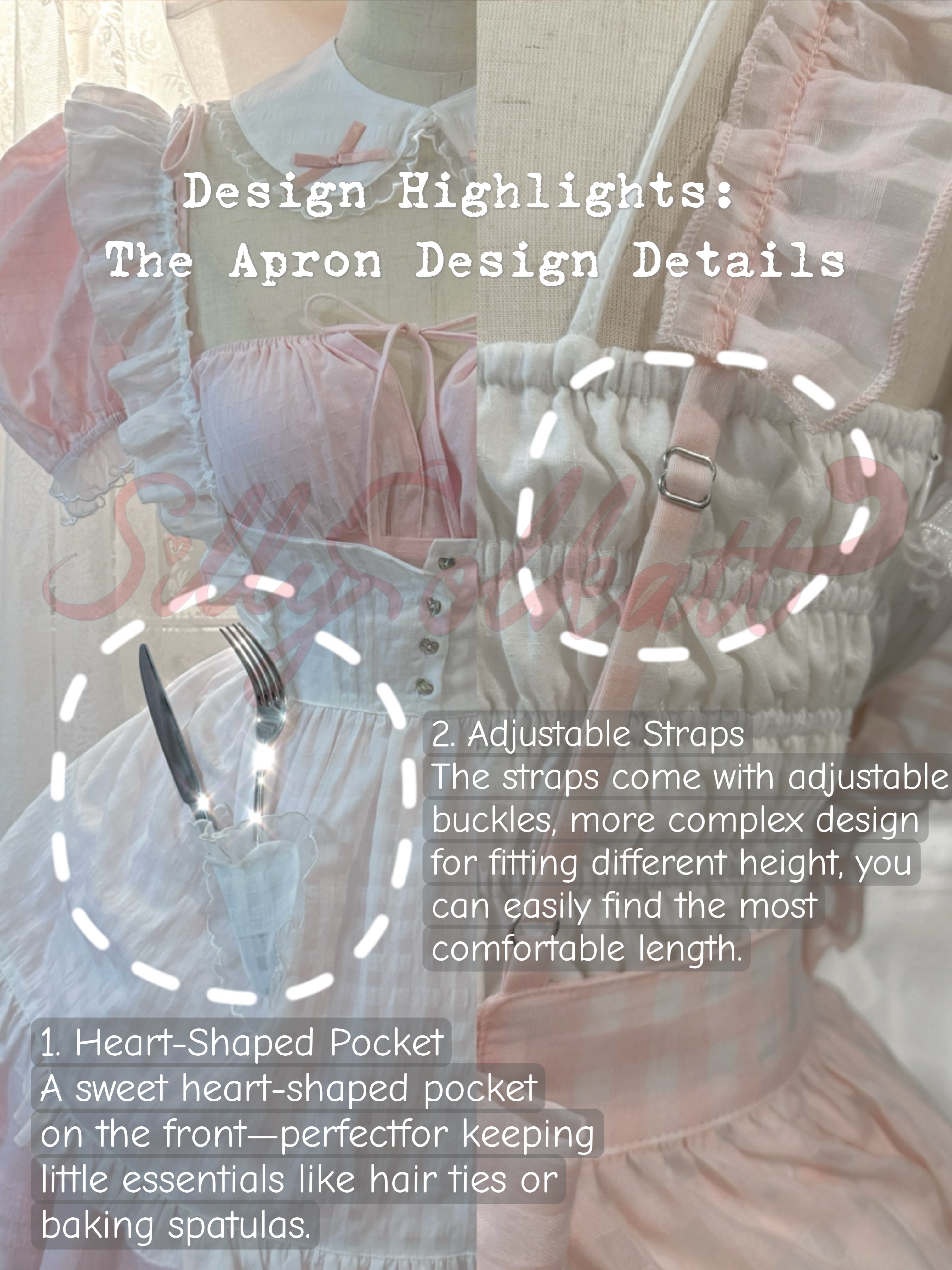 - Collar is together with the apron as a set, the collar is finished with the same cute little shell buttons.